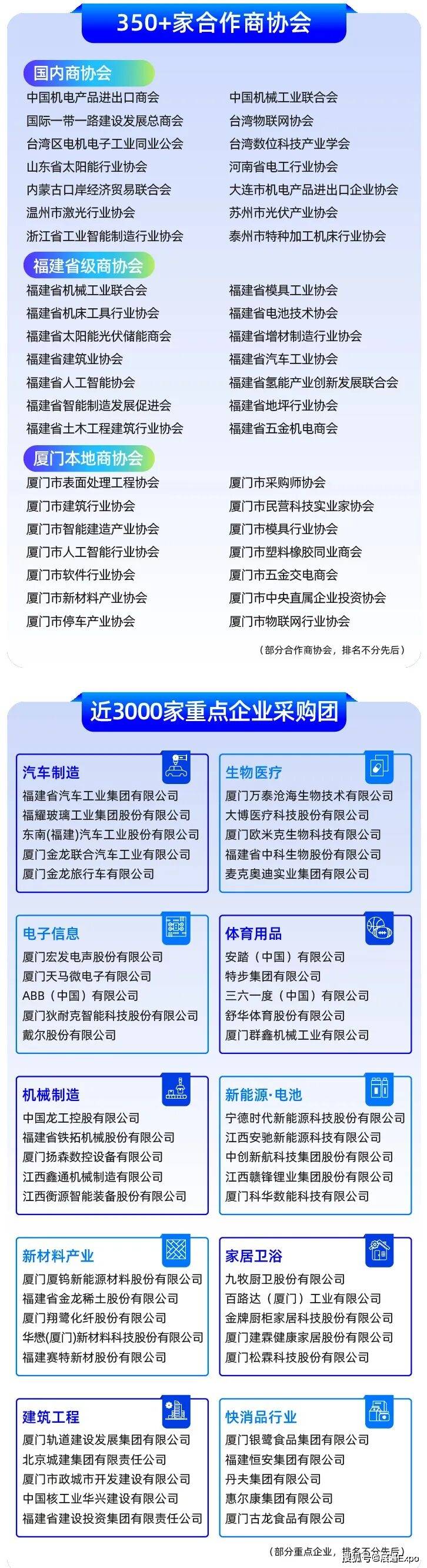 350+家行业商协会组团采购,3000+ 家沉点企业采购团,笼盖电子消息、新能源、机械制制、汽车制制、建建工程、生物医疗等多个范畴,供需精准婚配,让您参展即无机会锁定大额订单!
